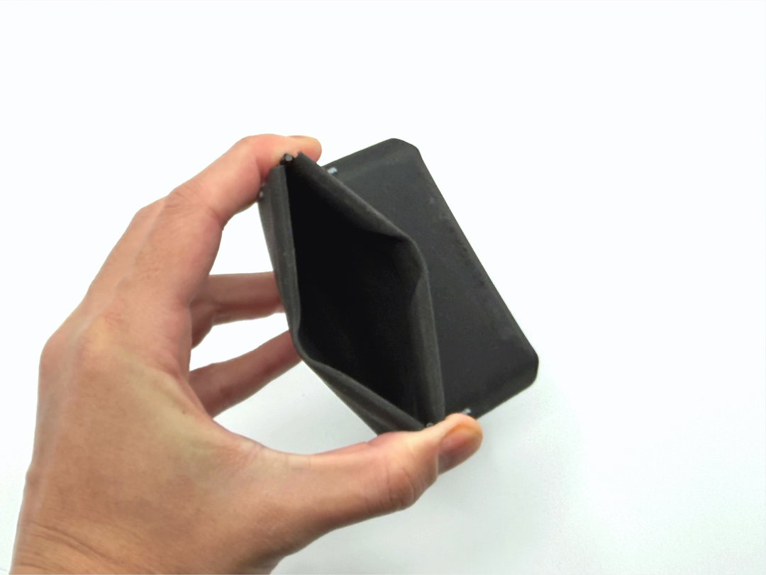 RE:FORM RE:01 は 2 つ折りスタイルの財布で、マグネットで閉じられるようになっています。